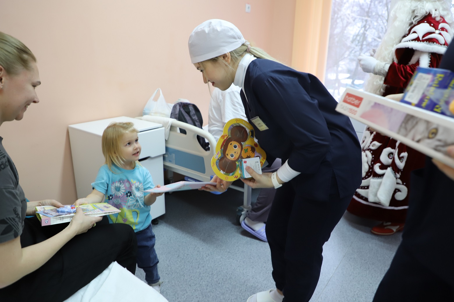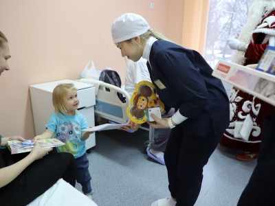 Студенты базового медицинского колледжа поздравили детей из стационарного отделения и пациентов, пришедших на амбулаторный прием. Ребятам вручили подарки: развивающие игры, книги, канцтовары, игры-головоломки, а также наборы для творчества и игрушки.
