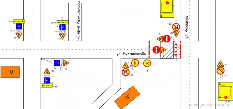 В Пензе в связи с ремонтом теплотрассы перекрыто движение транспорта на участке улицы Рахманинова, 1 «Г».