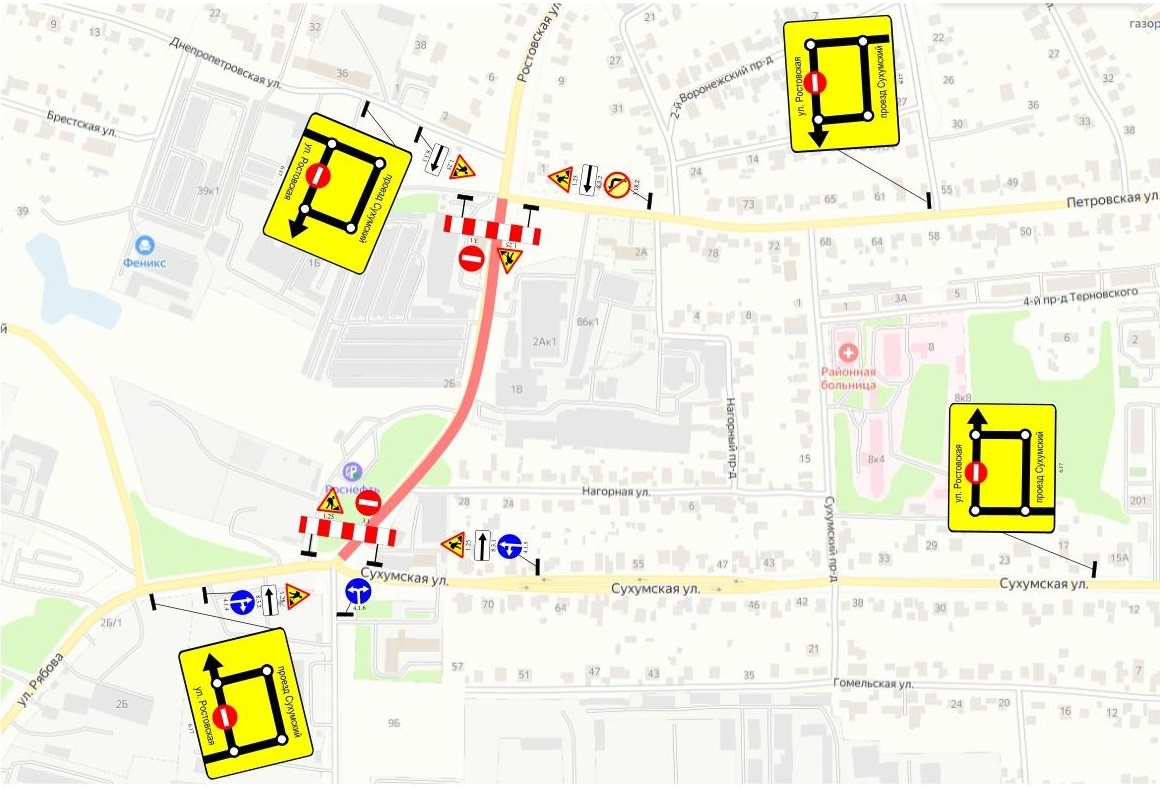 В связи с проведением  ремонтных работ на участке дороги по ул. Ростовской, с 8:00 14 августа по 23 августа будет полностью перекрыто движение для всех видов транспорта.