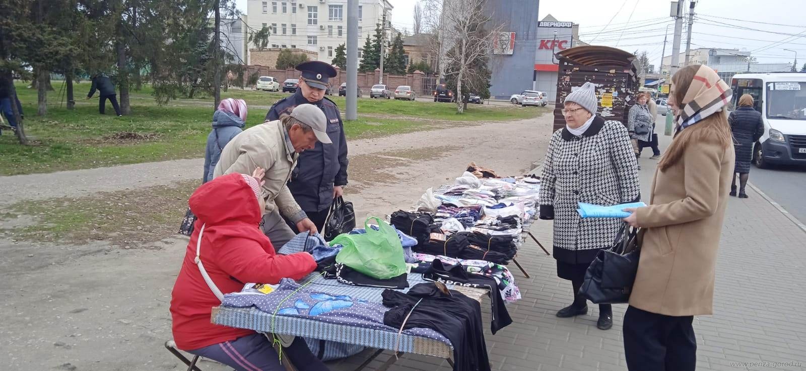 В минувшую пятницу, 14 апреля, в Пензе прошел рейд по местам несанкционированной торговли. Проверяющие посетили торговые точки по проспекту Строителей,134, улицам Стасова,7, Чехова, Бакунина, Фурманова,3, 8 Марта, Коммунистической, Экспериментальной, 8, Терновского, 183.