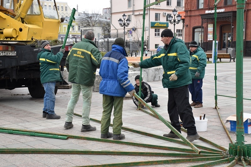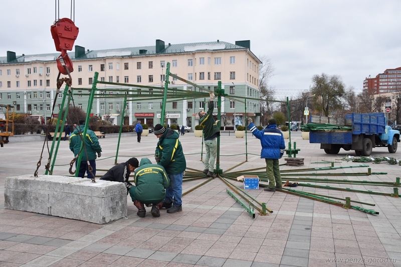 Сегодня, 13 ноября, пресс-служба городской администрации сообщила о том, что на площади Ленина начались работы по монтажу главной «зеленой красавицы» Пензы. Высота искусственного дерева составит 25 метров.