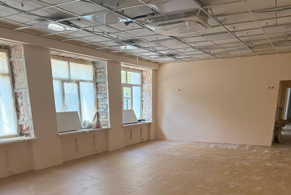 Ремонт стартовал 1 апреля и продлится до октября. В областном Минобре сообщают, что на сегодня подрядчики выполнили уже 66% запланированных работ. В полном объеме завершен демонтаж, заменены оконные блоки, отремонтирована кровля, усилены конструктивные элементы фасада. Сейчас активно идут отделочные и инженерные работы: ремонт фасада, цоколя и полов, монтаж новых систем водоснабжения, отопления и вентиляции, а также электромонтаж. Кроме того, продолжается замена дверей и ремонт отмостки.
