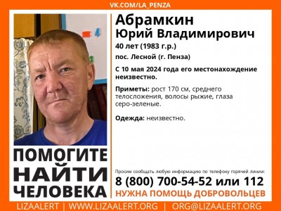 Волонтеры из поискового отряда «Лиза Алерт» опубликовали ориентировку на поиск 40-летнего Юрий Абрамкина. Он перестал выходить на связь с родными 10 мая.