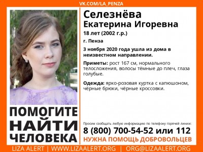 В ней говорится о том, что в этот день в областном центре пропала 18-летняя девушка. Селезнева Екатерина Игоревна ушла из дома в неизвестном направлении и не вернулась.