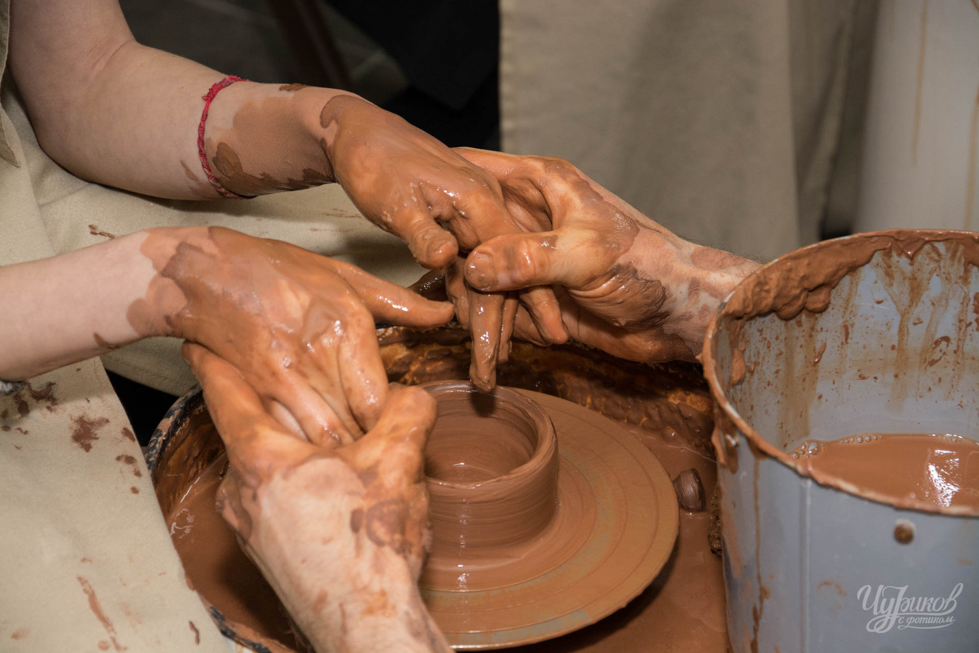 На открытие в «Каплю солнца» пришли не только участницы проекта, но и все, кто захотел попробовать себя в роли мастера. Присутствующим предложили слепить подсвечники, а также самостоятельно скрутить любое изделие на гончарном круге.