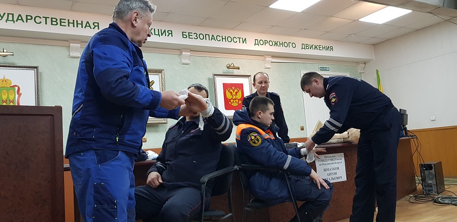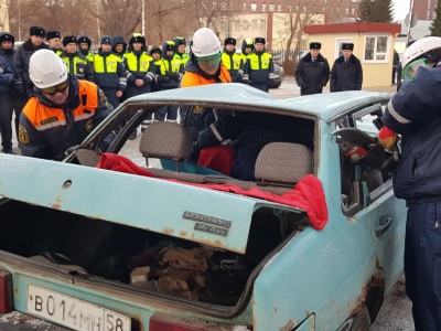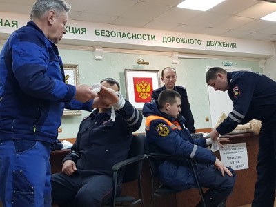 Сотрудники поисково-спасательной службы пожарно-спасательного центра и 1 ПСО ФПС ГПС МЧС провели практические занятия для сотрудников Госавтоинспекции. Специалисты отработали практические навыки по извлечению пострадавшего из автомобиля при дорожно-транспортном происшествии, прошли основы оказания первой помощи с применением медицинской укладки.