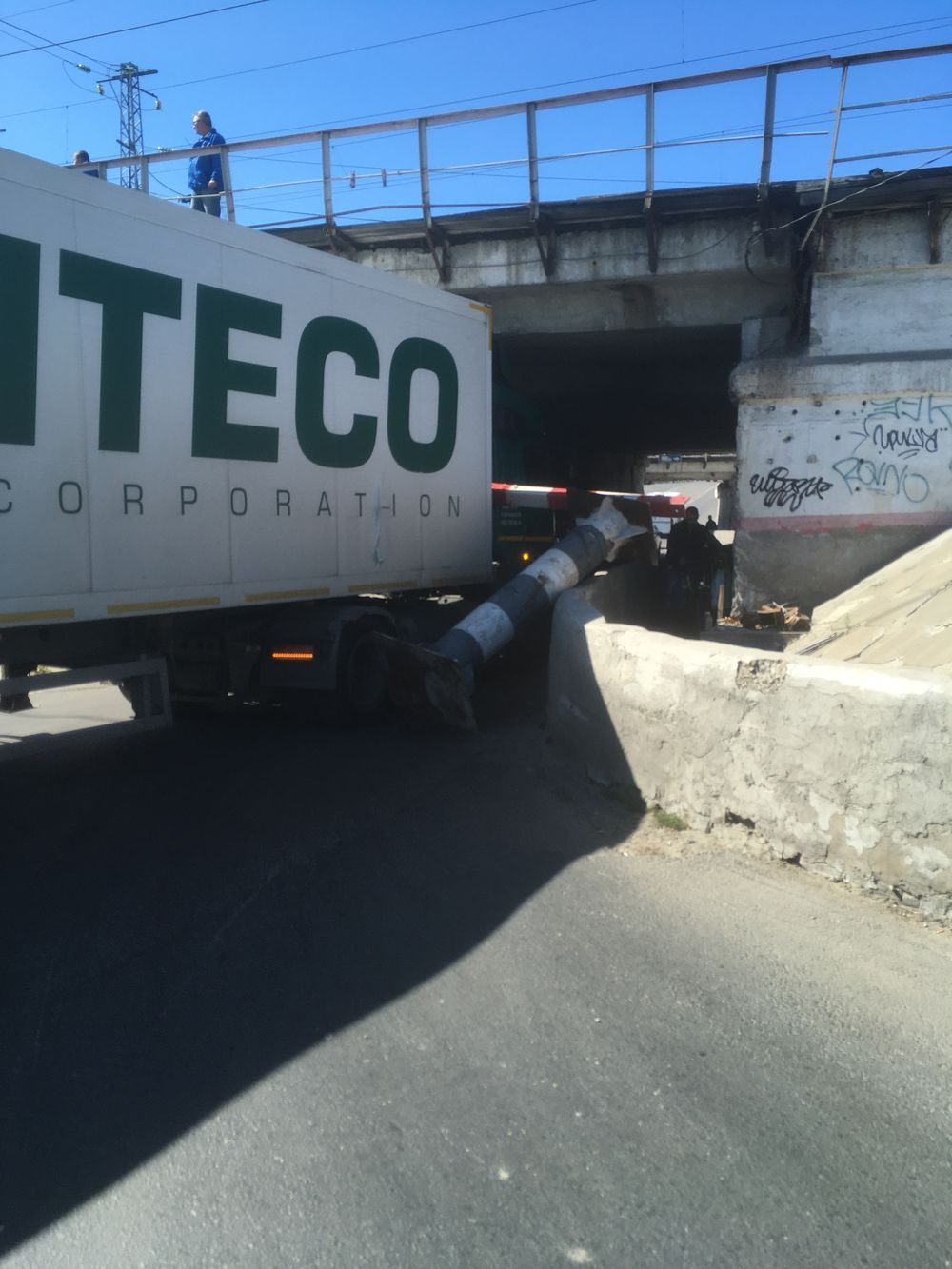 В Пензе спасателям пришлось доставать фуру, застрявшую под мостом