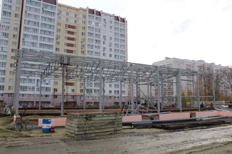 Стало известно, на каком этапе в настоящее время находится строительство. Сейчас на объект завозят металлоконструкции для возведения здания и монтажа каркаса. Специалисты заняты укладкой щебеночного основания футбольного поля. Также они занимаются прокладкой водоотведения и электроснабжения. Кроме того, подрядчик начал устанавливать бордюры и обустраивать щебеночное основание дороги и тротуара.