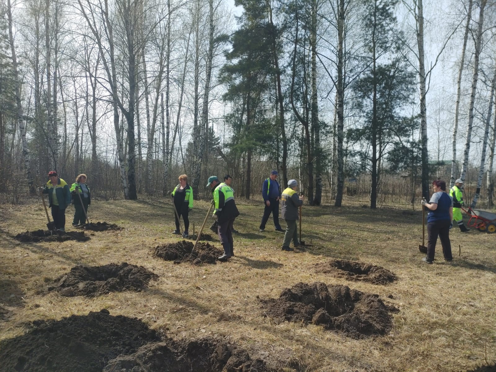 По словам градоначальника, ученики школы №66 помогли побелить стволы деревьев.