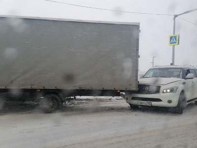 Один из очевидцев прислал в редакцию «Столицы 58» фотографии с места происшествия. На них видно автомобиль марки «Infiniti», который въехал в заднюю часть грузового авто.