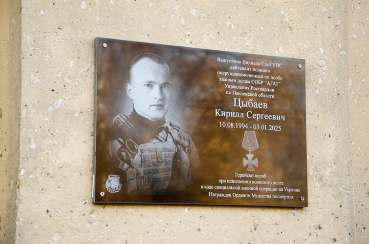 На территории Пензенского техникума железнодорожного транспорта состоялась торжественная церемония открытия мемориальной доски лейтенанту полиции Кириллу Цыбаеву, посмертно награжденному орденом Мужества за героизм, проявленный в ходе специальной военной операции.
