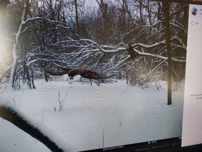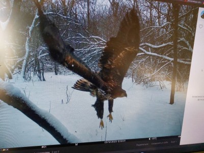 О необычном госте рассказал директор заповедника Александр Добролюбов. На своей странице во «Вконтакте» он опубликовал фото и видео, сделанные фотоловушкой. На них можно увидеть огромную хищную птицу.