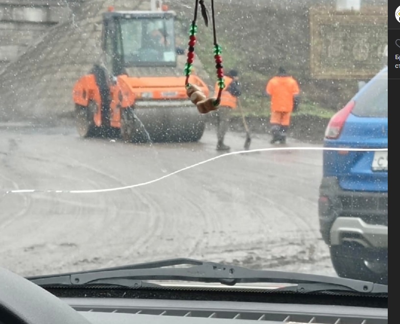 Причиной тому – дорожные работы, которые ведут рядом с мостом. Несмотря на непогоду работают специалисты, задействована спецтехника.