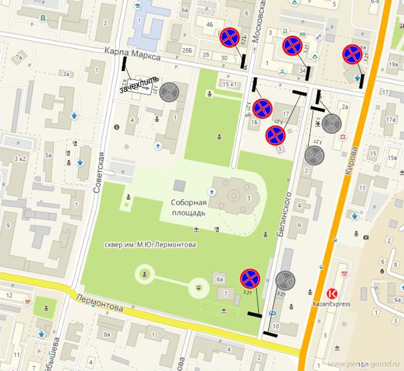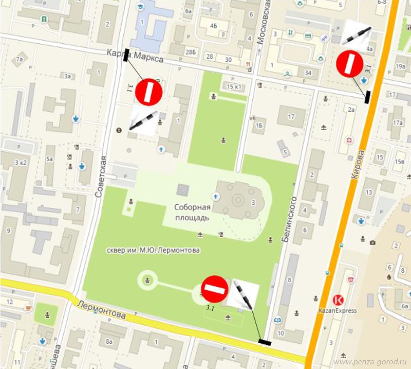 С 10 часов вечера 12 августа до 4 часов дня 13 августа пензенцы не смогут парковать свои авто на улице Московской (на участке от Карла Маркса до Соборной площади), улице Белинского (участок от Лермонтова до Карла Маркса), а также на улице Карла Маркса (участок от Кирова до Советской/Володарского).