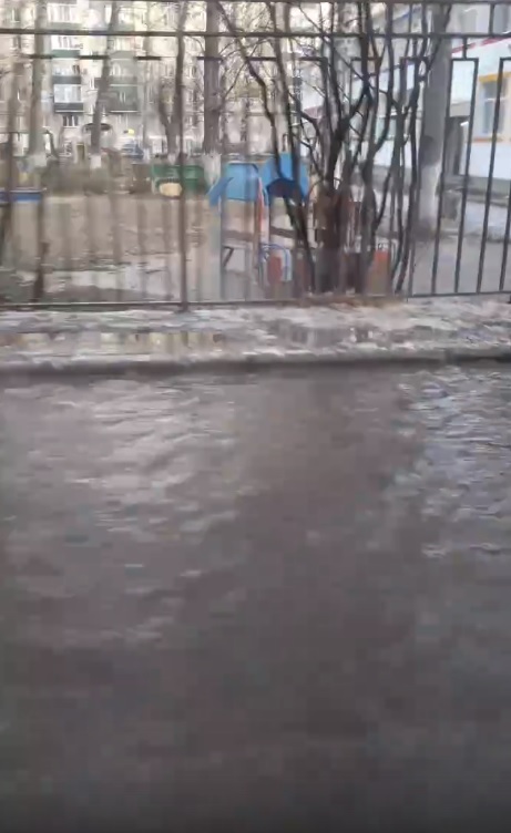 Кроме того, один из очевидцев опубликовал видео, на котором запечатлено, как вода, затопившая дорогу, начала стекать на территорию садика на улице Бакунина.