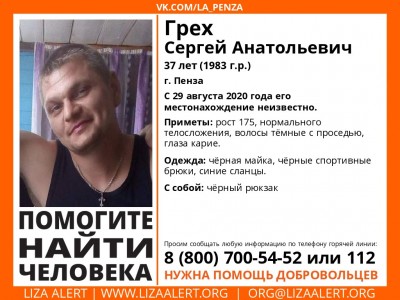 Сегодня, 16 сентября, волонтеры из поискового отряда «Лиза Алерт» опубликовали у себя на странице во «Вконтакте» новую ориентировку на розыск. Пропал 37-летний пензенец.