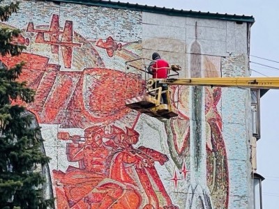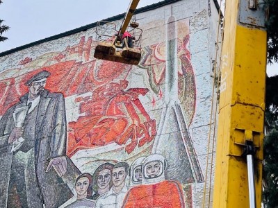 Напомним, панно появилось на торце пятиэтажки более 50 лет назад. В настоящее время у него осыпалась часть мозаики. Площадь утраченных элементов – около 6 квадратных метров.