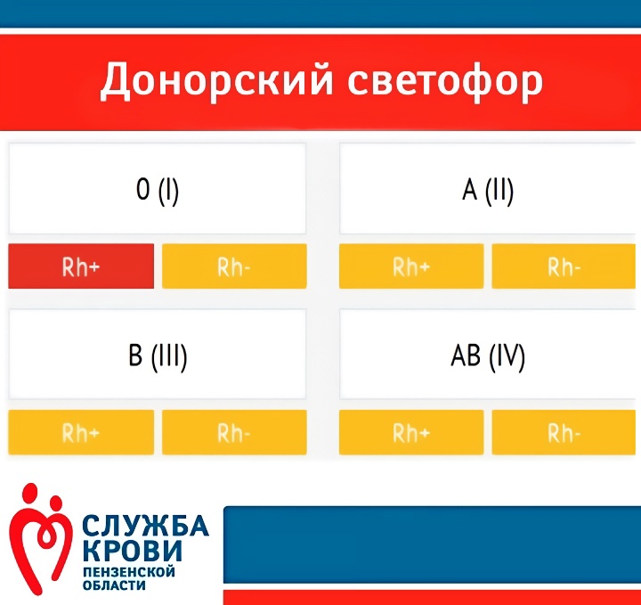 «Желтый цвет – означает, что крови данной группы и резус-фактора недостаточно, нужно прийти и сдать кровь. Красный цвет – означает, что сложилась повышенная потребность в крови данной группы и резус-фактора, просим доноров прийти и сдать кровь», – отмечают специалисты.