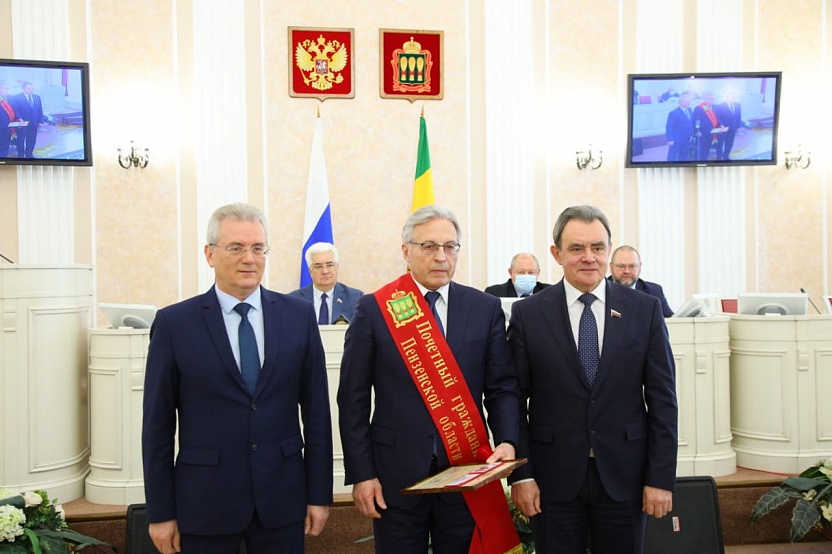 Соответствующие регалии новому почетному гражданину вручили губернатор Пензенской области Иван Белозерцев и председатель Законодательного Собрания Валерий Лидин.