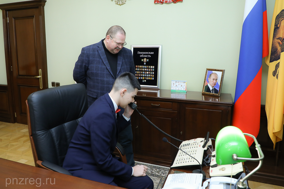 Олег Мельниченко показал школьнику свой рабочий кабинет и ситуационный центр правительства. Юноше предложили провести совещание в режиме онлайн. Юный пензенец выслушал доклады министров образования, спорта и культуры, а также главы администрации города Кузнецка Сергея Златогорского. Последний рассказал о том, какие мероприятия запланированы в городе в праздничные дни.