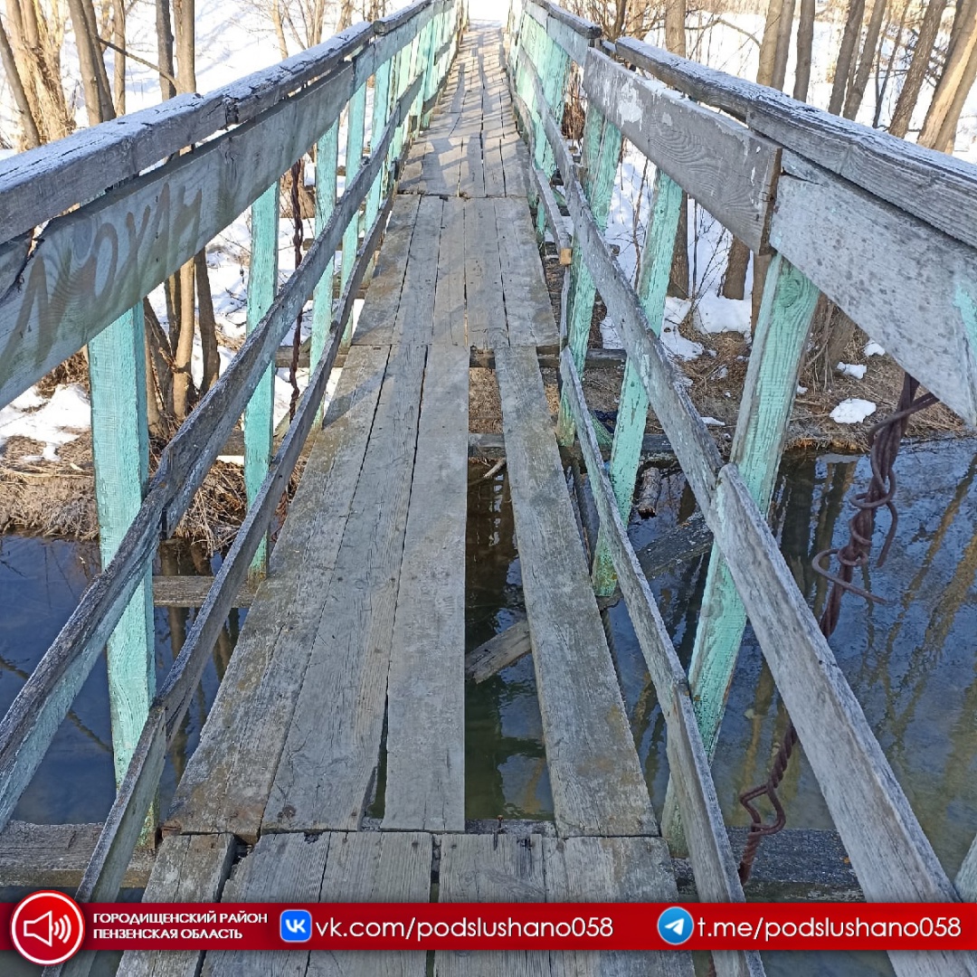 Рисковать своей жизнью на полуразвалившемся мосту приходится жителям Городищенского района. Фото сгнившего сооружения было опубликовано в соцсети «Вконтакте».
