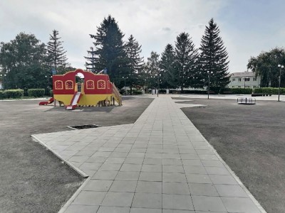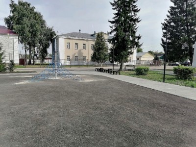 Рабочие заасфальтировали дорожки, уложили бортовой камень, тротуарную плитку, установили детские игровые комплексы, спортоборудование, скамейки и урны.