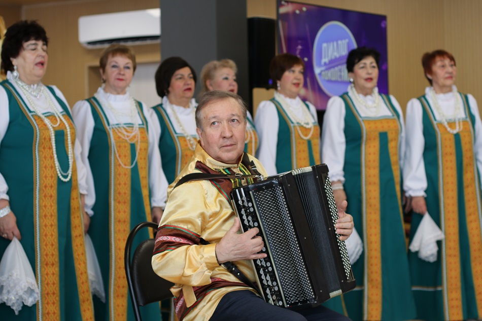 В субботу, 25 февраля, в Центре культурного развития впервые прошло новое музыкальное шоу «Диалог поколений». В рамках шоу состоялись соревнования между представителями старшего поколения из народного хора «Душа России» и младшими исполнителями из детской ковальной студии «Контраст».