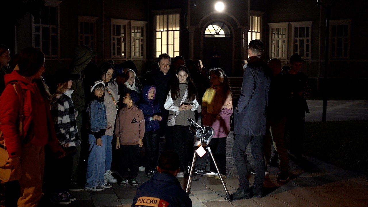 Телескоп установили на площади перед планетарием, все желающие смогли рассмотреть через него звезды и кратеры Луны.