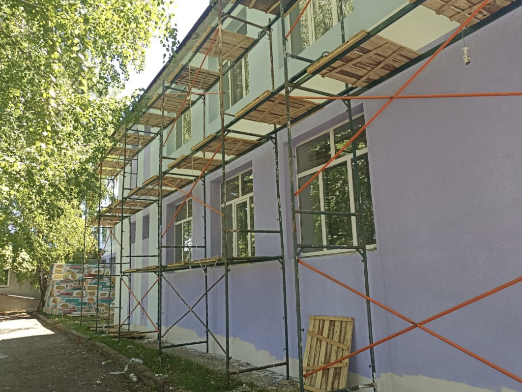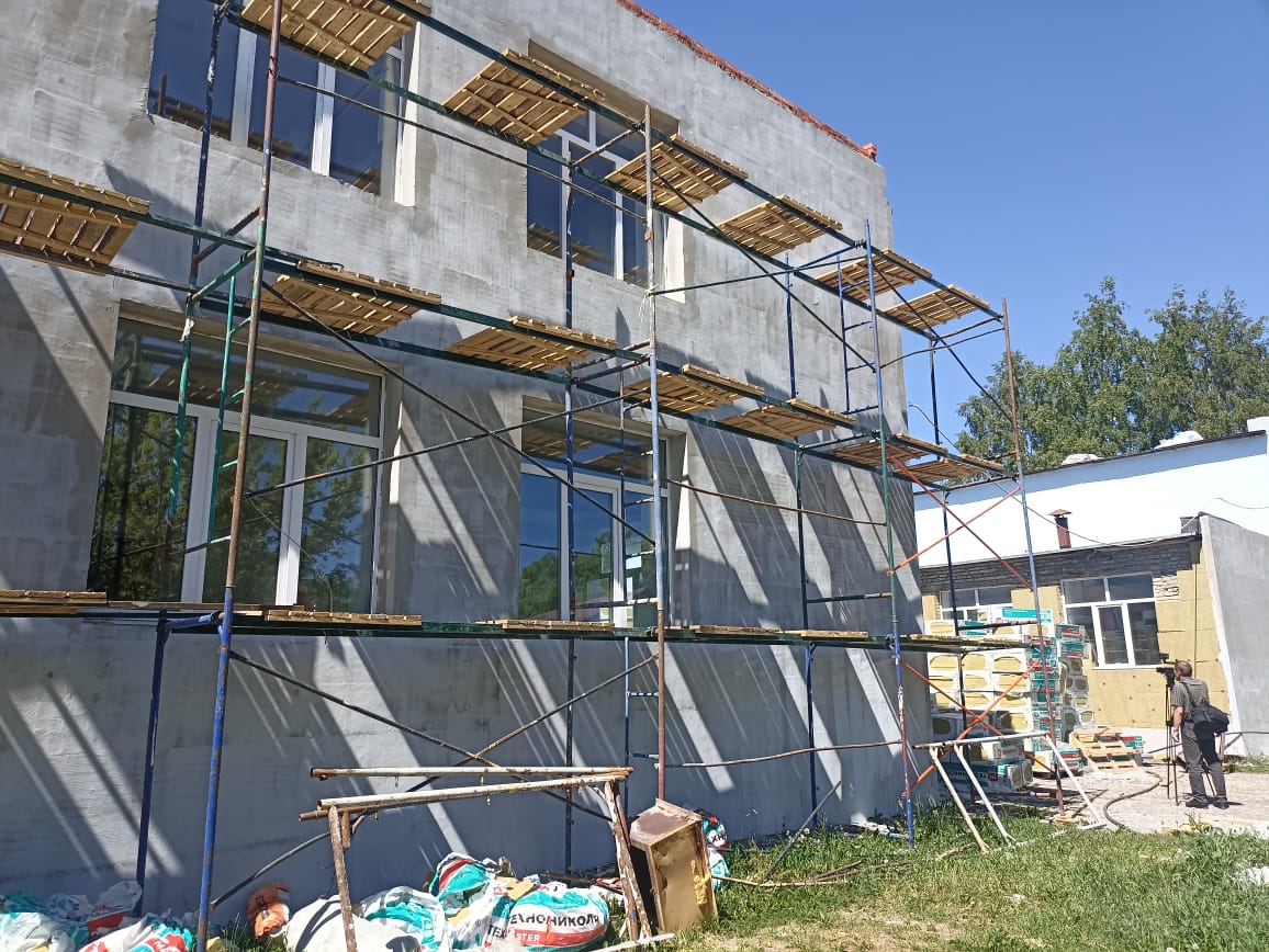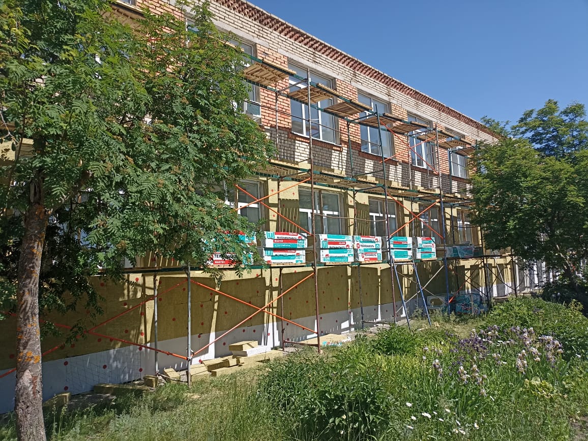 Сегодня, 29 мая, стройплощадку посетил министр образования региона Алексей Комаров. Он отметил, что в настоящее время подрядчик практически завершил работы по фасаду здания. Более 60% утеплено и отремонтировано.