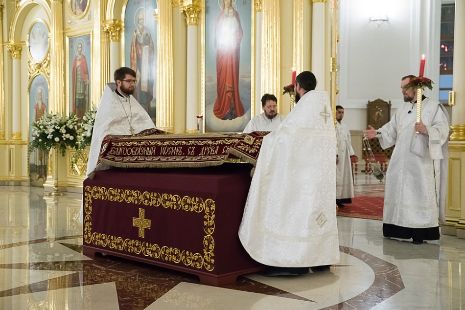 По запричастном стихе протоиерей Владимир Ольхов зачитал Пасхальное послание Святейшего Патриарха Московского и всея Руси Кирилла.