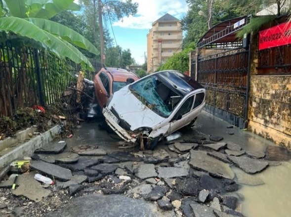 В последние два дня на Сочи обрушились ливни. В результате непогоды погибла женщина, повреждения получили более 50 легковых автомобилей.