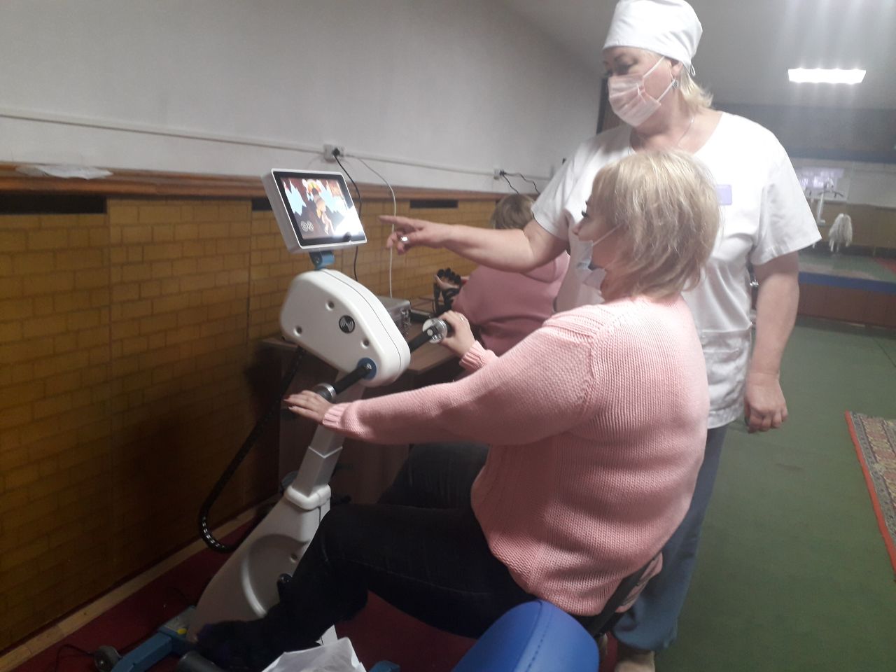 Отделение получило: тренажерный комплекс для тренировки ходьбы «Биокинект», тренажер «Баланс-мастер» с биологической обратной связью, два аппарата для механотерапии «Орторент», комплекс «Балфит», велоэргометр «Орторент», кинезитерапевтическую установку «Экзарта» и многое другое.