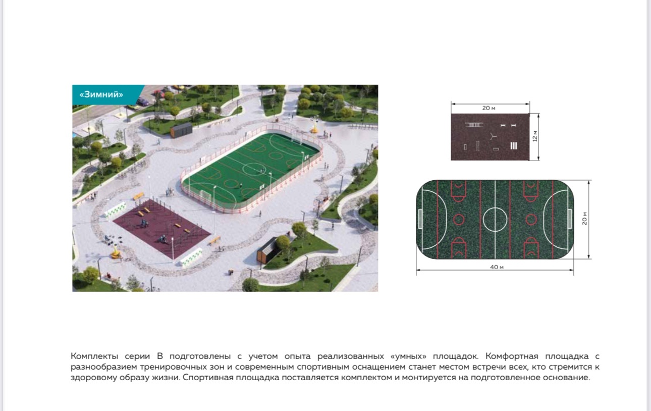 «Будущая спортивная площадка будет обладать мультифункциональностью, предоставляя возможность для занятий различными видами спорта. Спортивная площадка трансформируется в зависимости от сезона. В теплое время года – это футбольное и баскетбольное поле, место для занятий общей физкультурой. А зимой сможет эксплуатироваться как ледовый каток», – рассказала Евгения Бочкарева.