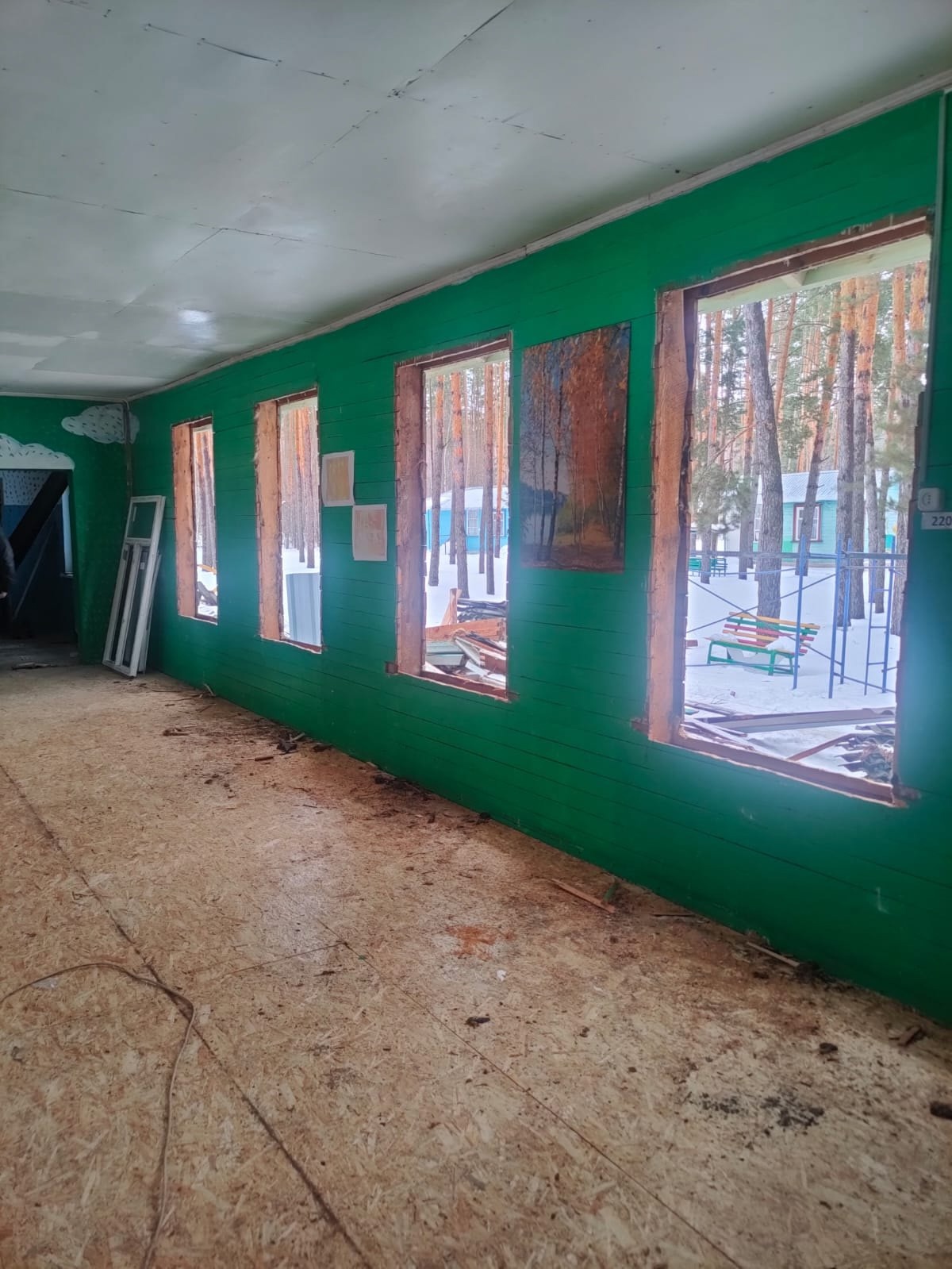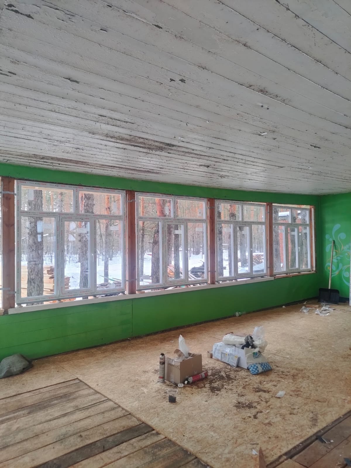 «На данный момент подрядная организация полностью выполнила демонтажные работы. Идут работы по замене оконных блоков, устройству чердачной кровли», – пояснил Александр Бедикин.