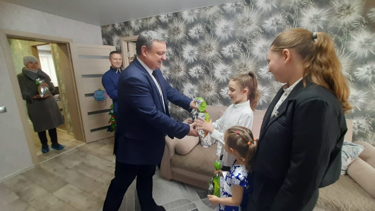 Глава Сердобского района Александр Бедикин 25 декабря поздравил с Наступащим Новым годом многодетную семью Мовенко. Он лично вручил им различные подарки.