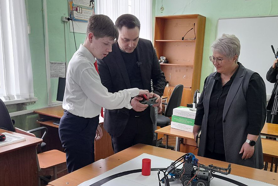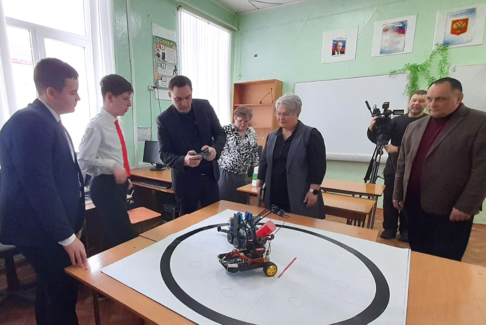 Глава ведомства пообщался с детьми и увидел сделанные ими разработки на кружке «Азы робототехники».