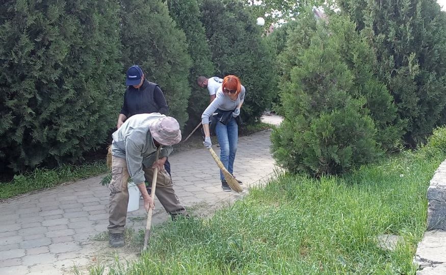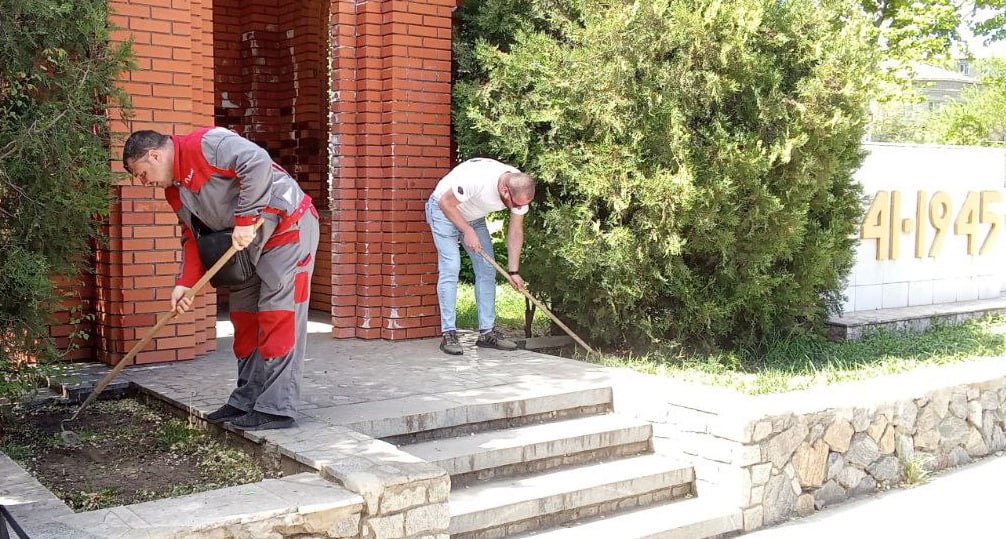 В пятницу, в рамках общемуниципального санитарного дня, сотрудники администрации города Токмак убрались на территории мемориала «Книга памяти» токмачан, погибших в годы Великой Отечественной войны.