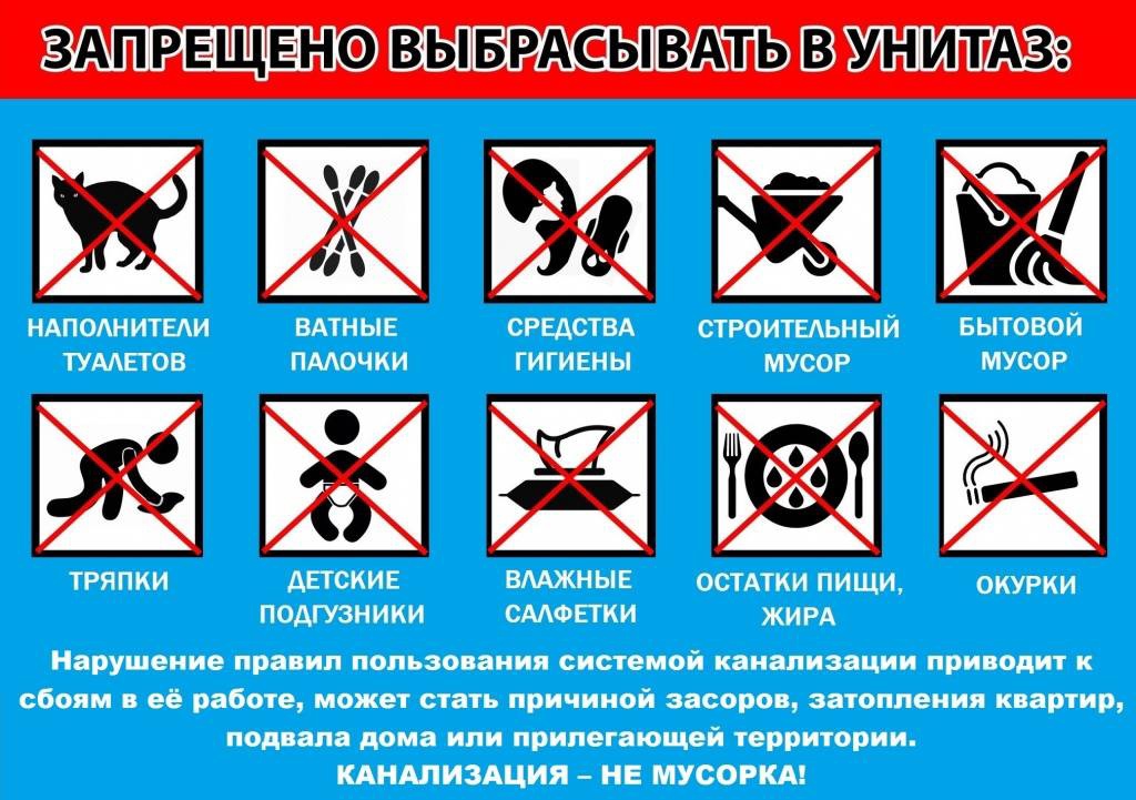 Сотрудники УЖКХ попросили жителей улицы не нарушать правила пользования канализацией, чтобы засоры не повторялись, а также прикрепили памятку о том, что запрещено выбрасывать в унитаз.