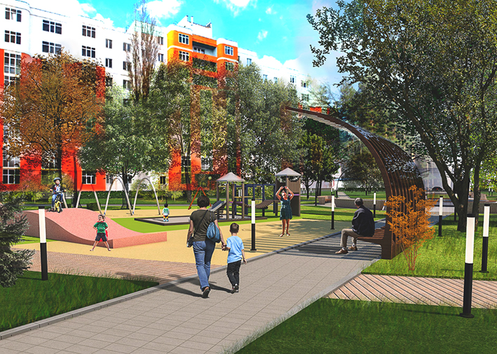 - На земельном участке около домов №№ 4, 6, 8 по улице Восточной могут быть реализованы работы по устройству пешеходных дорожек, площадки для тихого отдыха, детская площадка. На объекте организуют освещение, установят скамейки и урны, сделают навесы. На детской площадке появится современное игровое оборудование для малышей и ребят постарше (карусель, качалки на пружинах, качели, песочница).