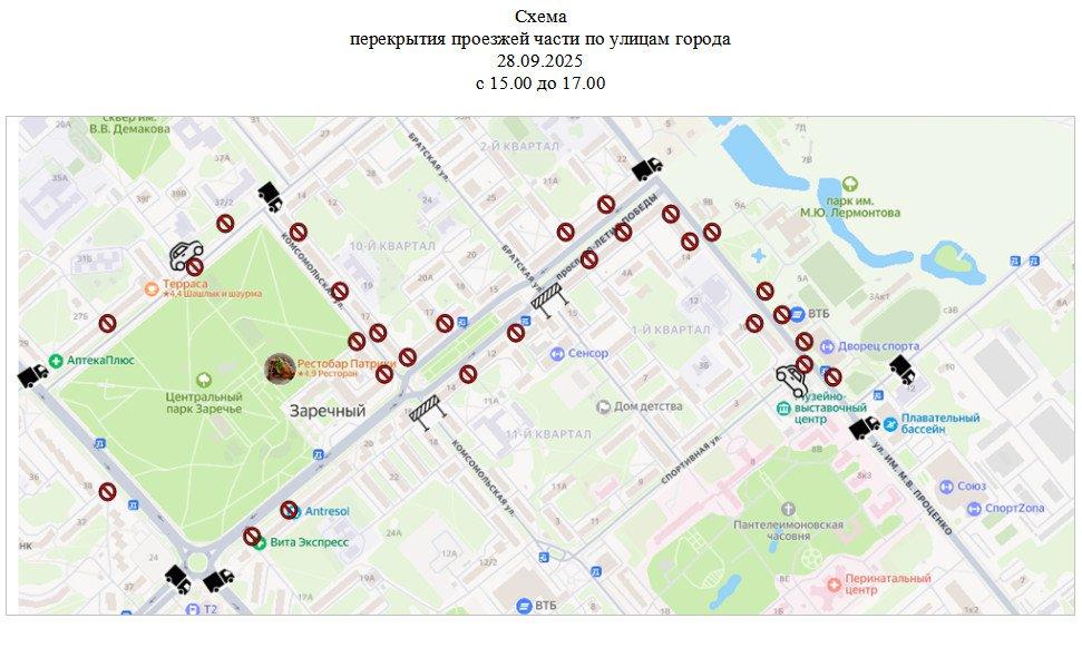 В связи с проведением массового спортивного события «Забег «Заречный» в администрации ЗАТО сообщили о временных ограничениях движения транспорта на территории города 28 сентября.