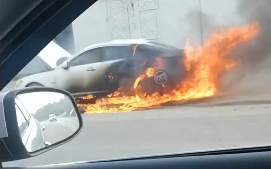 В социальных сетях жители закрытого города поделились видео, на котором видно, как рядом с СТО вспыхнула легковая машина. Огонь охватил заднюю часть транспортного средства.
