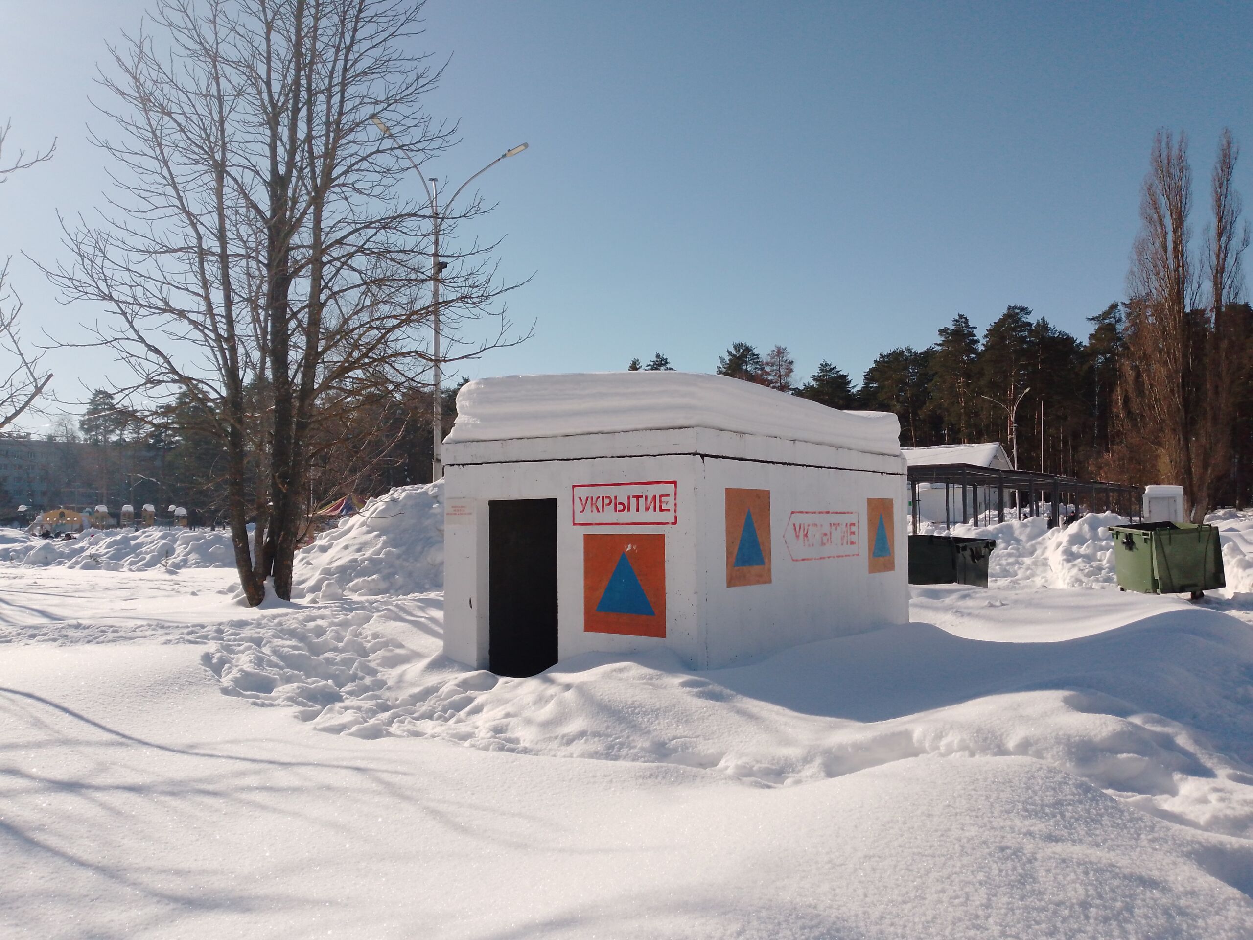 В парке установлено укрытие.