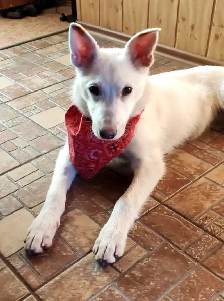 Шестимесячный щенок по имени Берта убежал от хозяев еще в октябре. Из-за надетого на собаку намордника ей грозила голодная смерть…