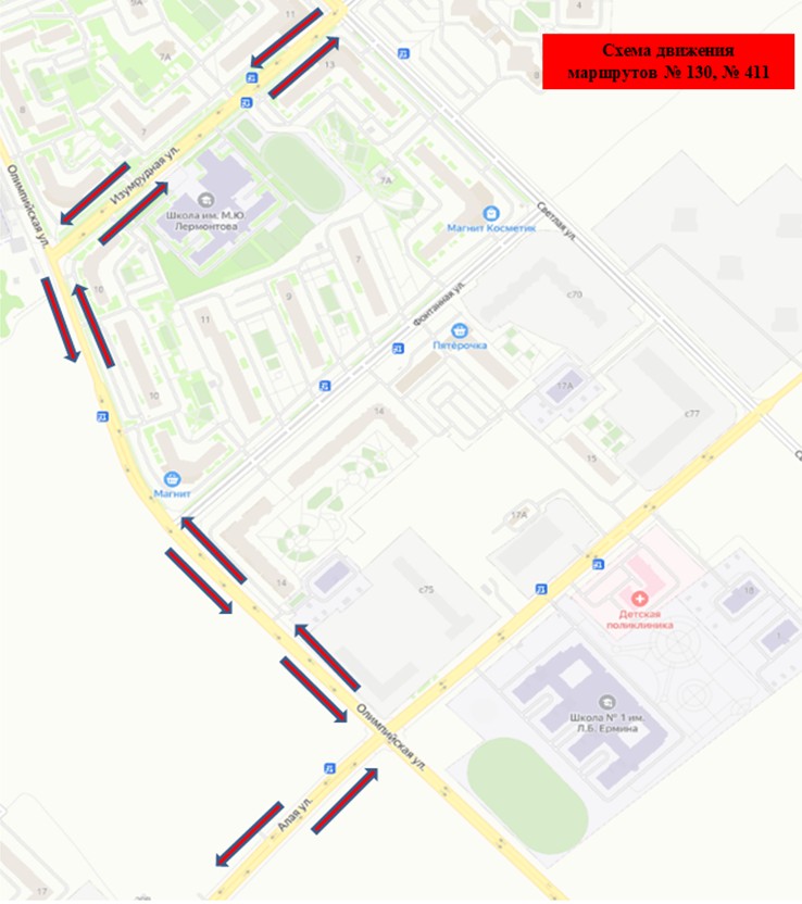 № 130 «Арбековская застава – с. Засечное (г. Спутник) – ТЦ «Ритейл Парк»: Автобусы с улицы Олимпийской будут следовать по улице Алой, а затем по обычному маршруту в обоих направлениях.