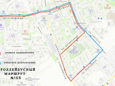 В обратном направлении: ул. Фонтанная – ул. Светлая – ул. Радужная – ул. Сухумская – ул. Терновского – далее по обычному маршруту.