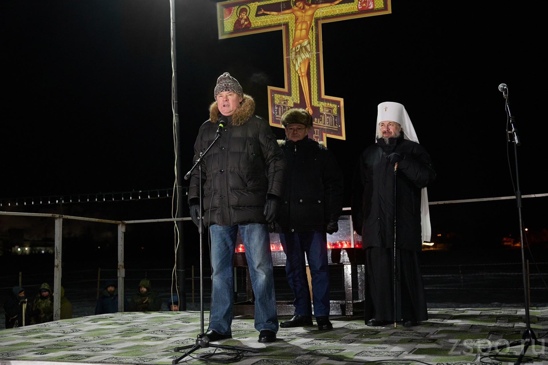 К приходу горожан на реке подготовили всё необходимое для безопасного и комфортного омовения. Специалисты оборудовали надежные купели, а рядом постоянно находились врачи и спасатели, готовые в любой момент прийти на помощь. Чтобы люди могли согреться после ледяной воды, их угощали горячим чаем и раздавали всем желающим освященную воду.