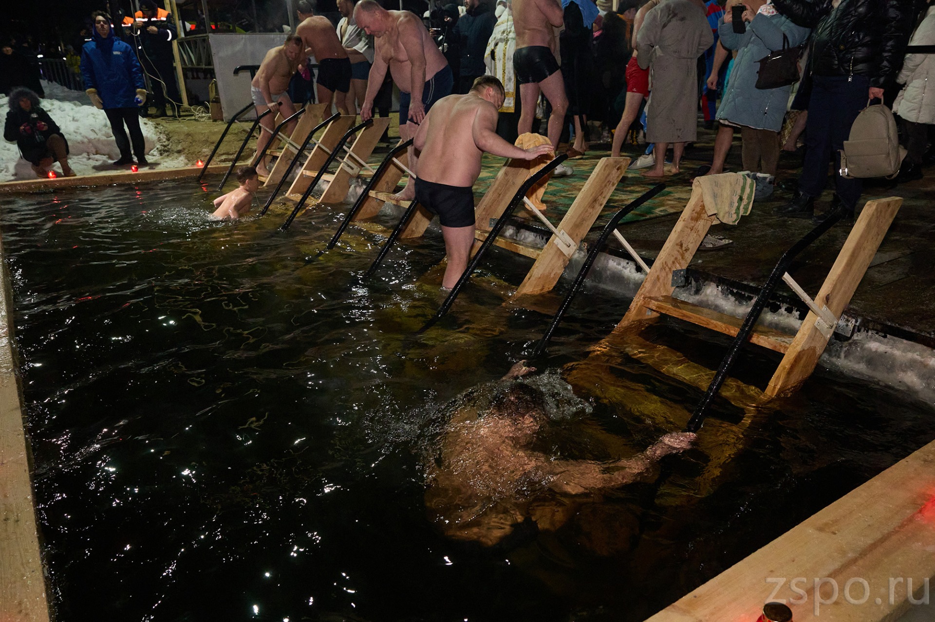 Сразу после завершения службы и чина освящения воды верующие начали окунаться в иордани.