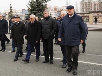 Официальные лица осмотрели Мемориал, где установлены памятные таблички с именами Героев Советского Союза, Героев Социалистического труда и полных кавалеров Орденов Славы – уроженцев Татарской АССР.