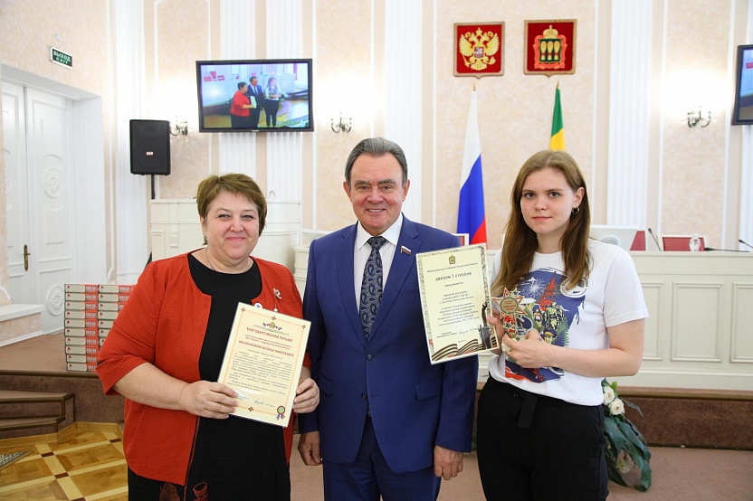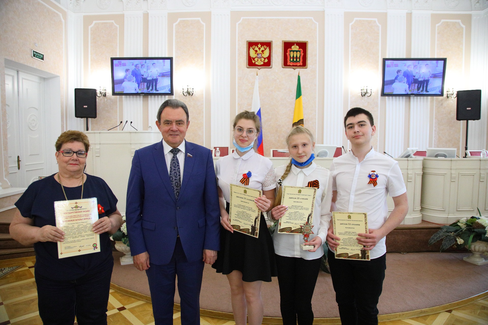 Сегодня, 19 мая, председатель областного Законодательного Собрания провел торжественную церемонию награждения лауреатов конкурса творческих работ «Победа далекая и близкая». Напомним, в конкурсе, посвященном 76-й годовщине Победы советского народа в Великой Отечественной войне, принимали участие учащиеся школ со всего региона.