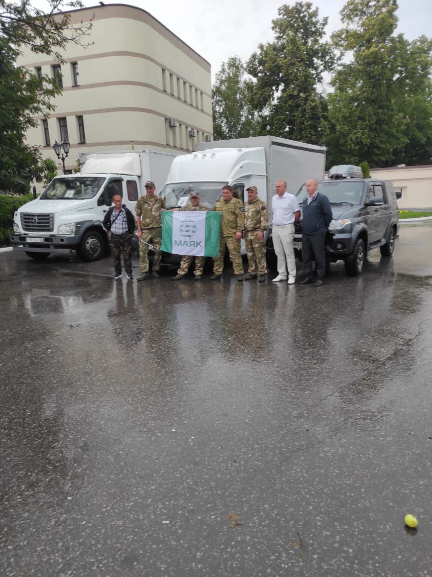 Конвой возглавляет начальник службы безопасности «Маяка» Сергей Карев. Состав гуманитарной колонны внушителен: три машины (Газон, Газель и пикап УАЗ с прицепом), четыре единицы техники, включая два мотоцикла. ОАО «Маяк» также завершает ремонт двух квадроциклов, которые будут переданы военнослужащим чуть позже.